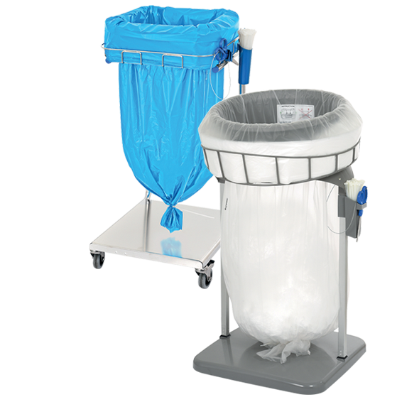 Die geräuscharmen Vorderrollen der Reihe Dynamic sind arretierbar. Zusätzlich können Kabelbinderhalter und Schere an der linken oder rechten Seite des Magazinhalters angebracht werden. Die Kunststoffteile sind aus metalldetektierbarem Material.