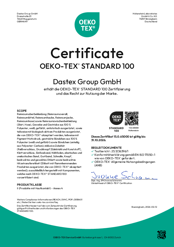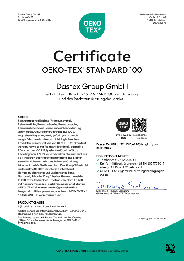 Dies beinhaltet Standardausführungen für Overalls, Hauben, Kittel, Hosen sowie T-Shirts und Pullover.